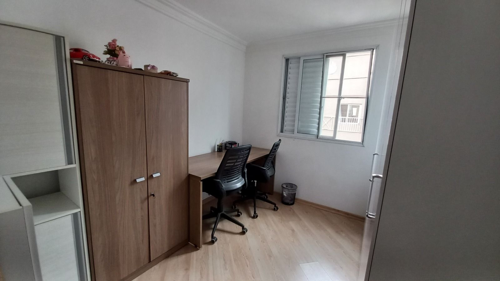 Apartamento localizado no bairro Parque Erasmo Assunção com 50m² distribuídos em 2 dormitórios, sala, cozinha, banheiro com móveis planejado, piso laminado e garagem fixa coberta.