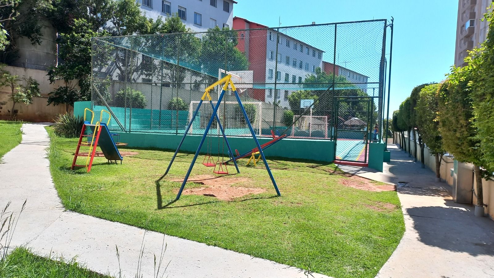 Conta com Portaria 24 horas, Academia, Quadra esportiva, Salão de festas, Churrasqueira e Forno de pizza, Playground, Brinquedoteca, Área verde, Sistema de Câmeras, Mercado interno e Espaço pet.