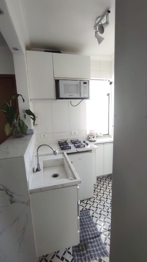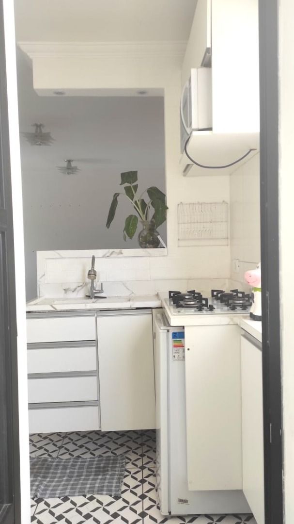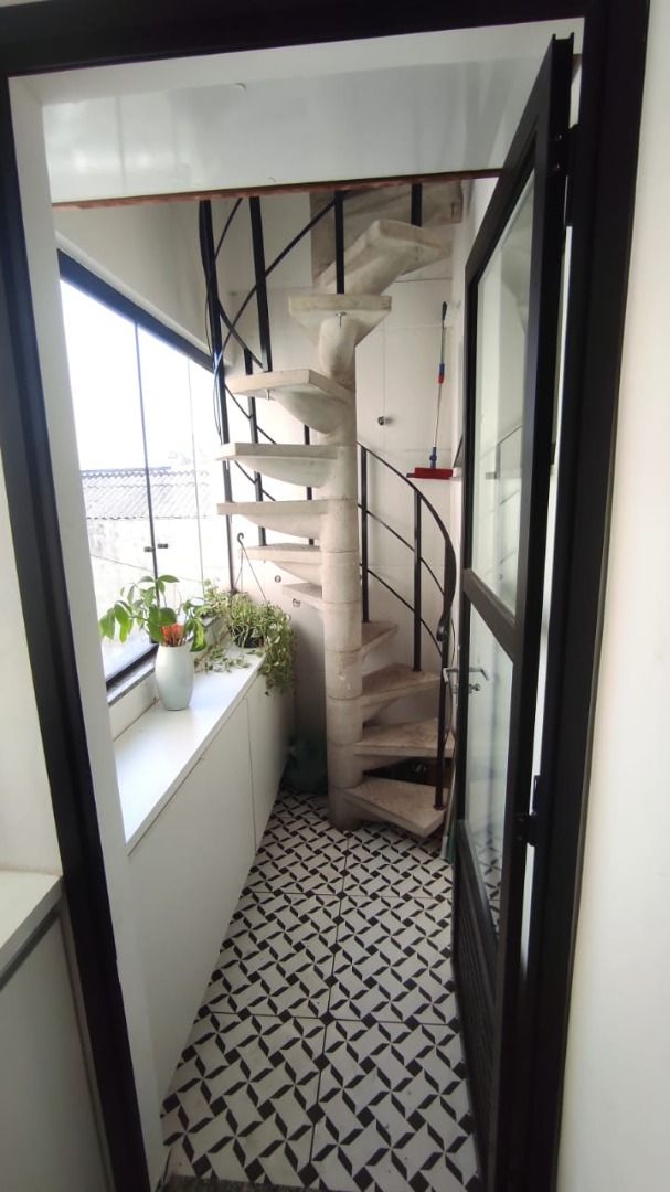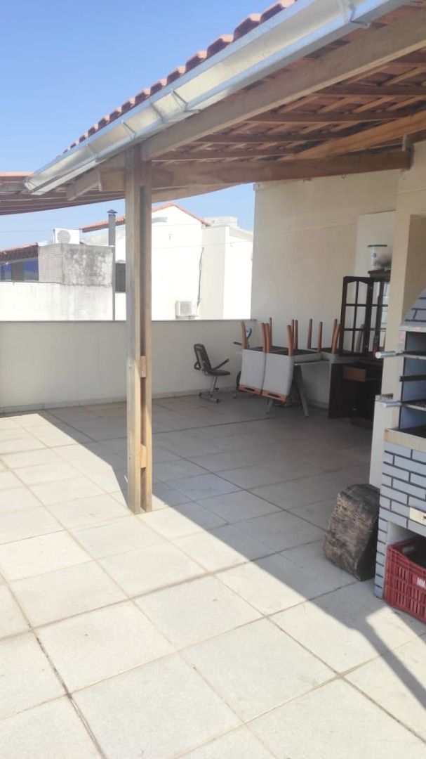 O imóvel possui 2 dormitórios, sendo 1 suíte, 2 banheiros no total, sala ampla para dois ambientes com sacada voltada para os fundos, cozinha americana e cobertura com acesso interno e externo. O espaço é bem iluminado, com sol da manhã e várias janelas que garantem ótima ventilação. A cobertura conta com telhado colonial e churrasqueira, ideal para momentos de lazer com a família.