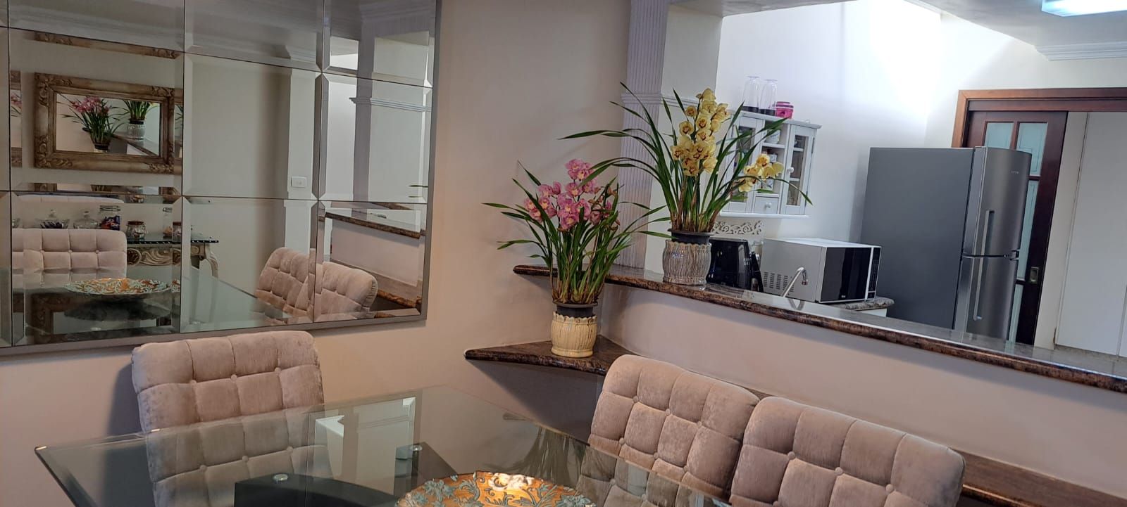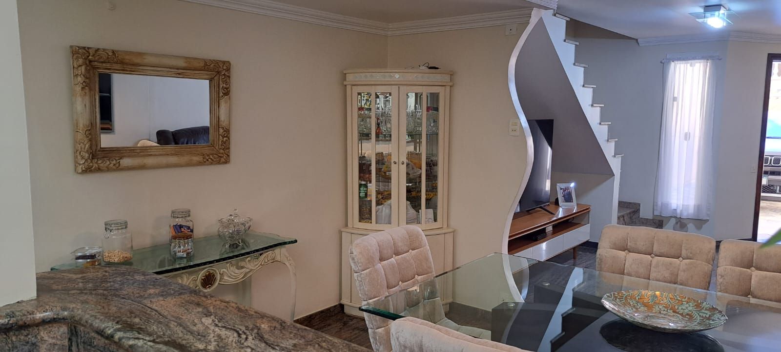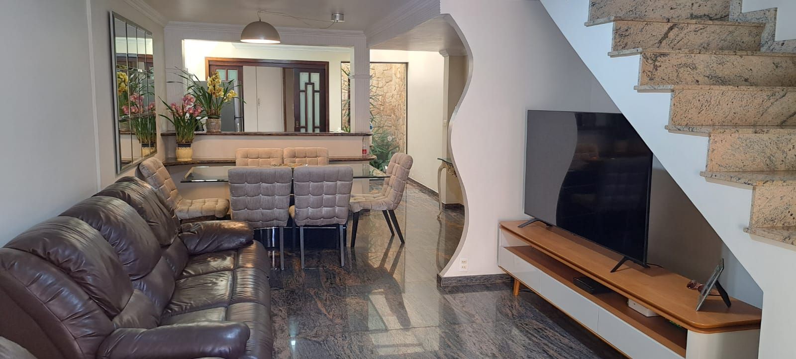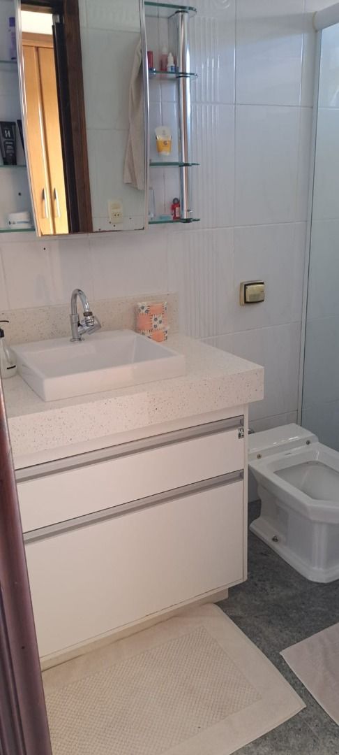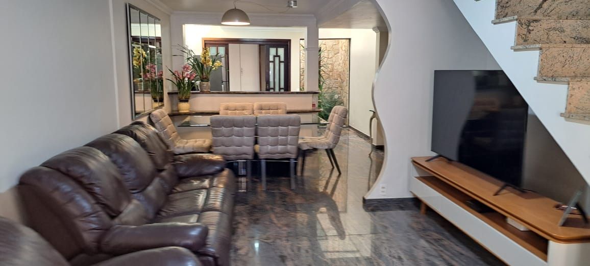 O imóvel conta com 2 dormitórios, ambos suítes, banheiro social, lavabo, sala ampla para 2 ambientes, cozinha planejada, edícula, área de serviço , pequeno quintal e dispõe ainda de 2 vagas de garagem.