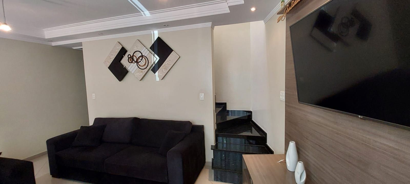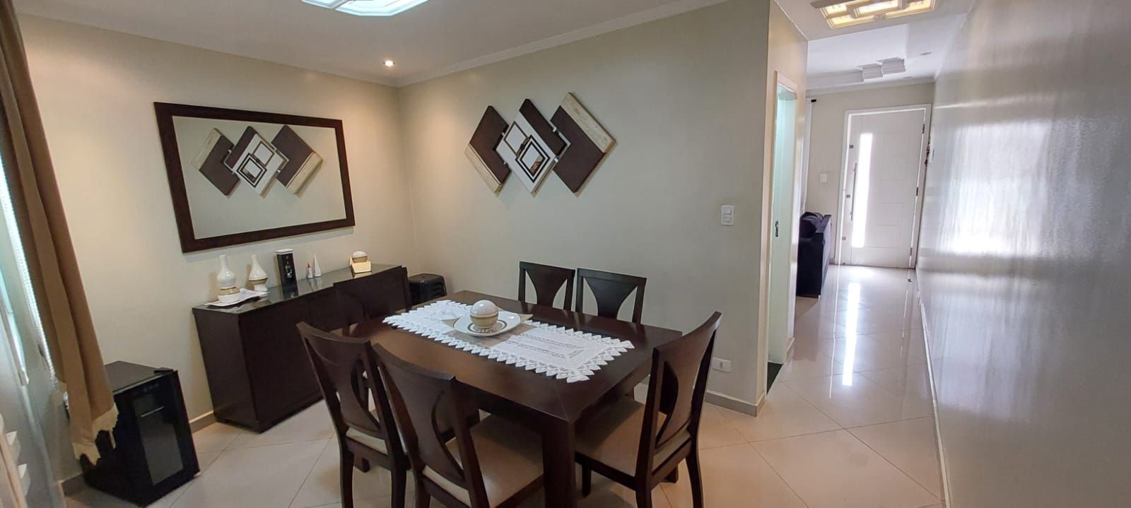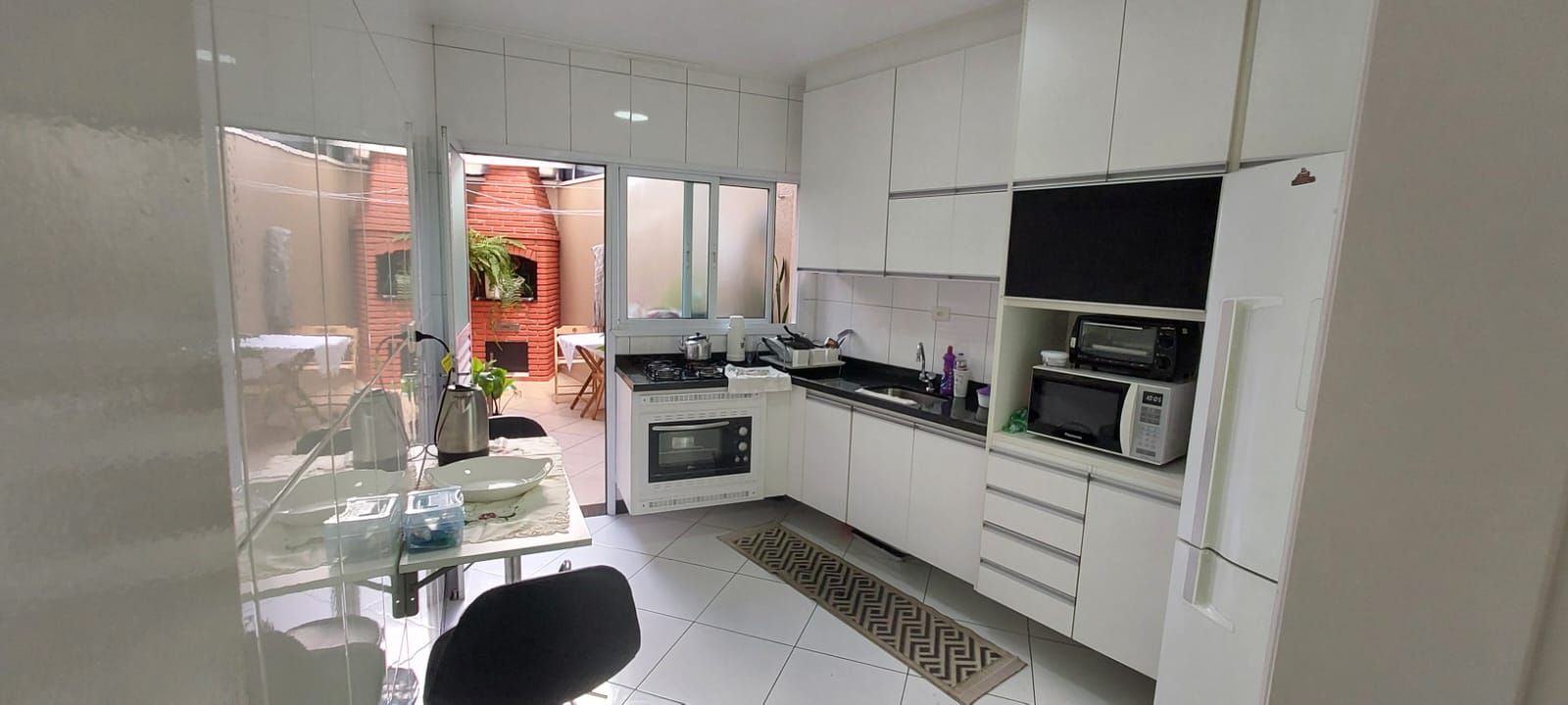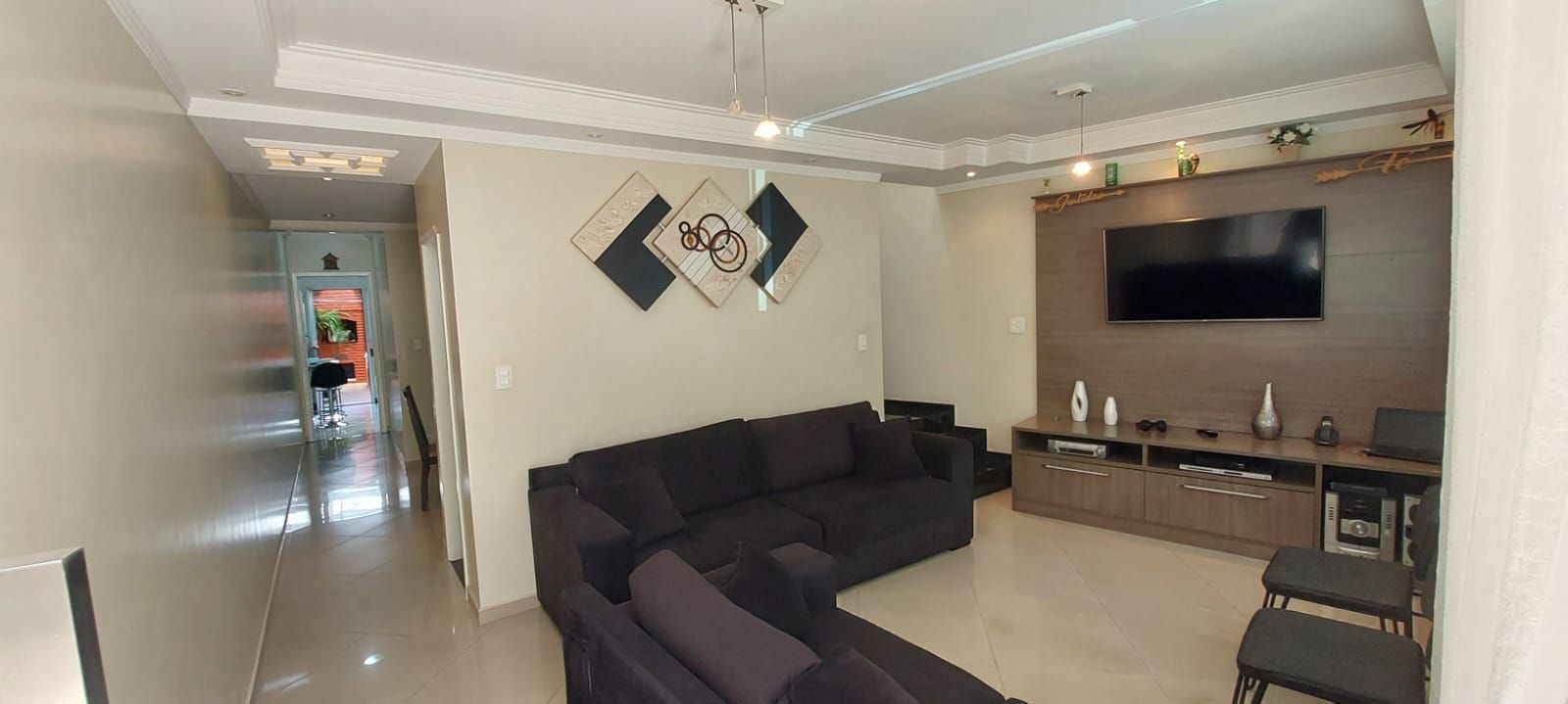Este sobrado oferece 3 dormitórios, sendo 2 com armários planejados e 1 suíte com sacada, garantindo praticidade e conforto. Conta ainda com banheiro social, sala com sanca e rack planejado, lavabo, cozinha equipada com armários, área de lavanderia, quintal com churrasqueira e cobertura Zetaflex, além de 2 vagas de garagem com portão automático.