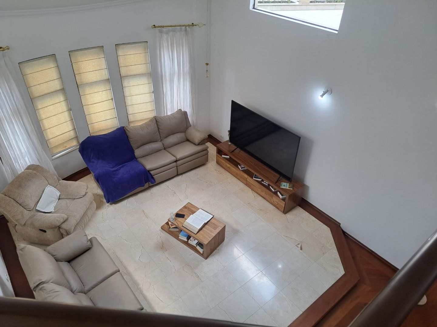*Sala de TV com pé-direito alto, sala de jantar e sala de estar.